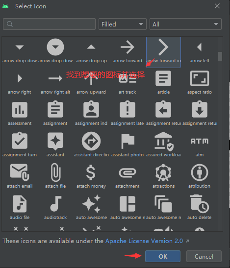 使用系统提供的图标,首先是找到想要用的 Icon: