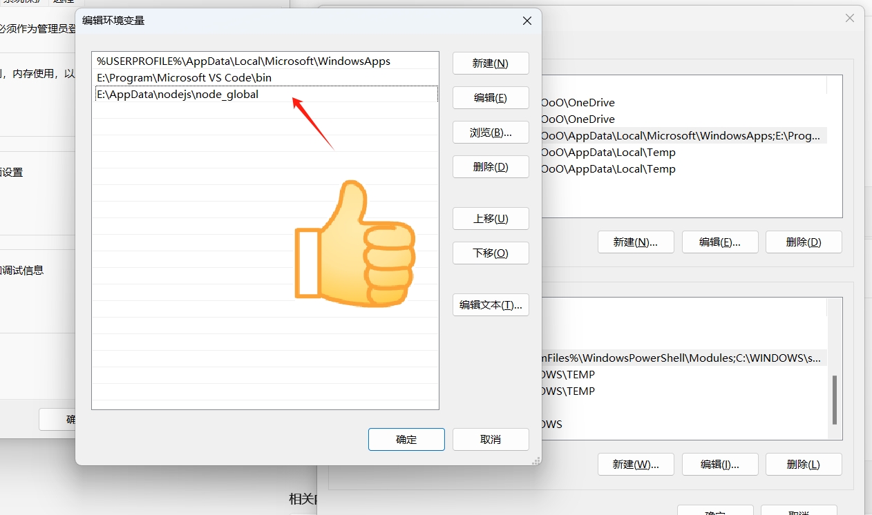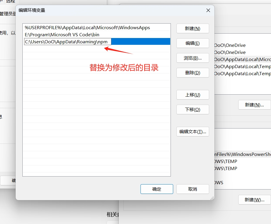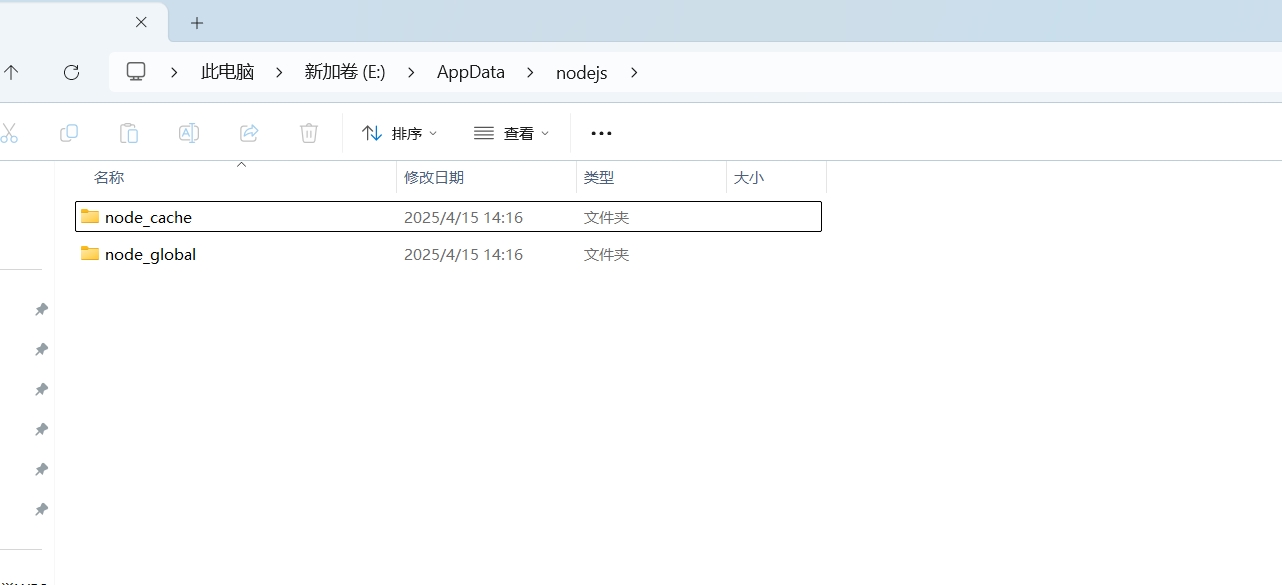 如果 C 盘空间小,可以修改到其他盘。我的目录 E:\AppData\nodejs: