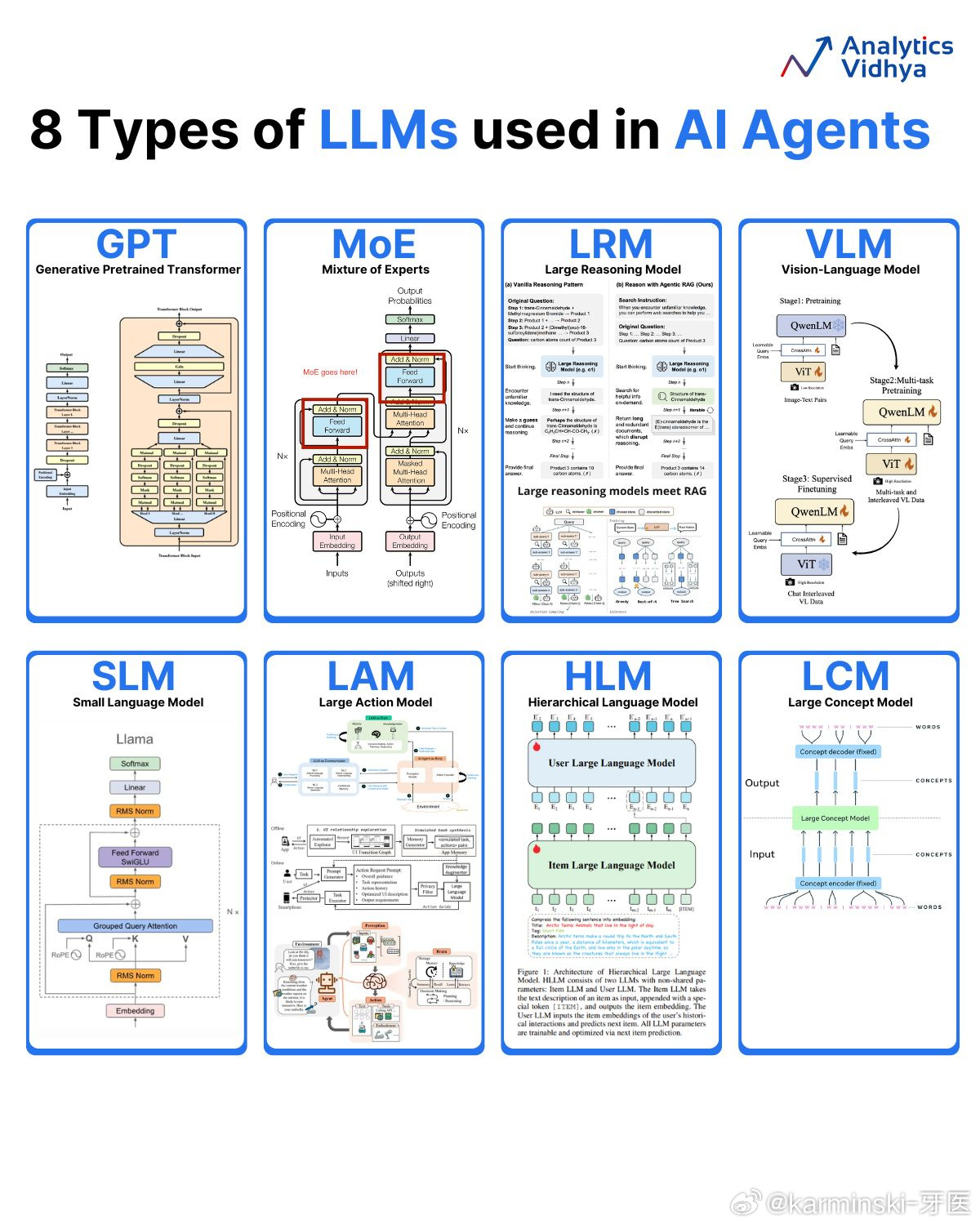 顾名思义,这是一种规模和参数量都相对较小的语言模型。图中的例子是Llama,虽然Llama系列也有非常大的模型,但这里用它来示意SLM的典型架构。小模型在特定任务上经过精调后,可以在资源受限的环境中高效运行。LAM (Large Action Model) - 大行为模型